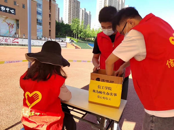 5月4日信工学院各党支部自发组织献出自己的充电宝,为核酸检测人员和扫码的志愿者带来极大的方便。作为当代大学生我们要尽自己力所能及,为新型冠状病毒做斗争做出一份贡献。在核酸检测过程中我们要始终保持秩序,听从志愿者的安排,帮助白衣天使与时间赛跑、与病毒作斗争。