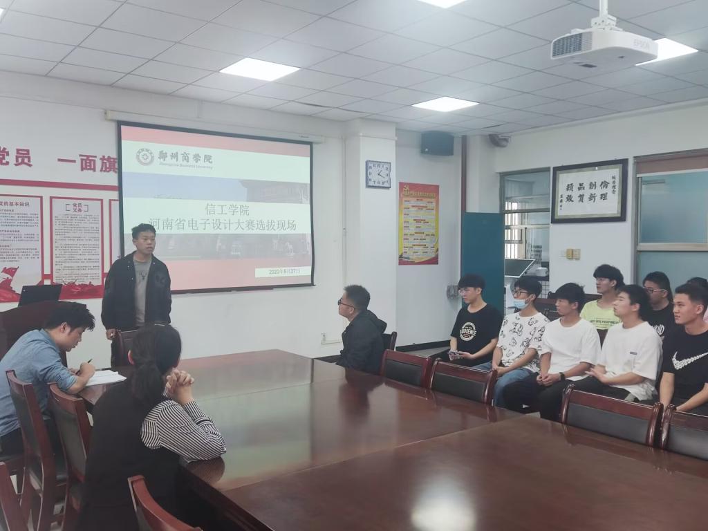 为贯彻落实省委、省政府关于“设计河南”建设的战略部署,持续深化教育教学改革,加快培养卓越设计人才,打造设计创新中心和人才高地战略。999策略白菜手机论坛信息与机电工程学院积极组织、动员学生参赛。2022年9月27日,信工学院组织竞赛报名学生进行大赛选拔,信工学院院长张晓冬、电气教研室主任张雅博和电子与通信教研室主任杨德青参加此次选拔工作。