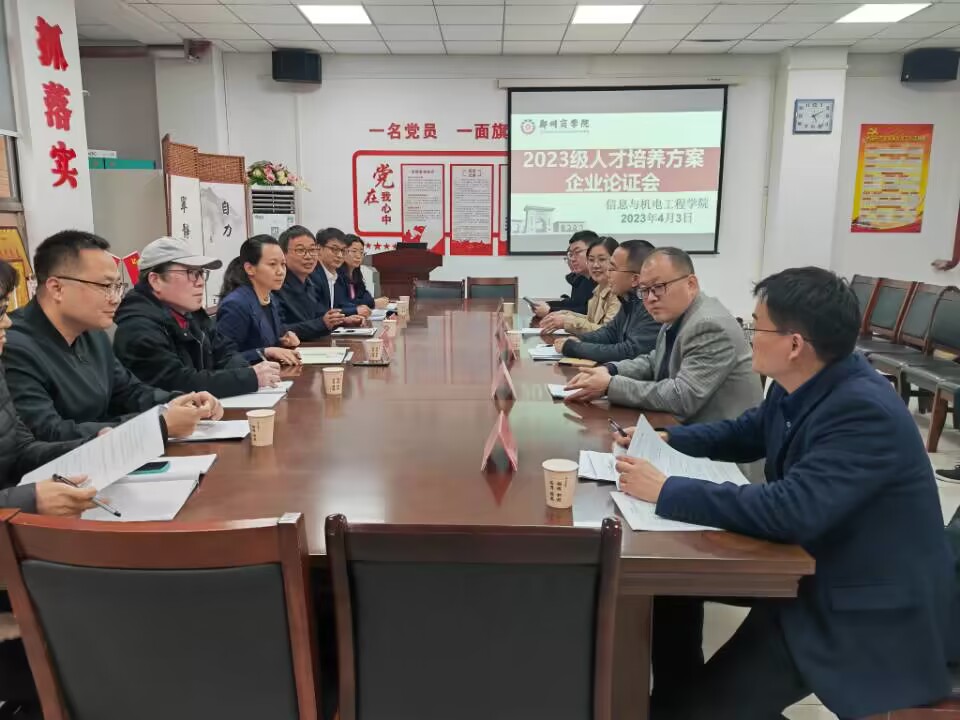 为持续深化教育教学改革,全面提升应用型人才培养质量,4月4日下午,信工学院在四号教学楼会议室召开了2023级人才培养方案企业论证会。本次论证会由信工学院张晓冬院长主持,教学质量监控与评估中心姚旭东老师、张伟华副院长、各教研室主任以及企业专家参加了此次会议。