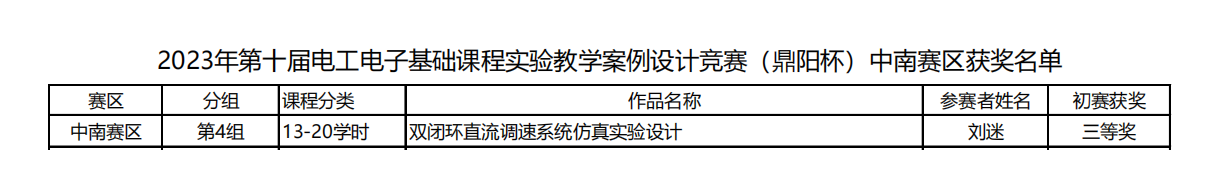 为了不断提高教师的实验教学能力和学科竞赛水平,信息与机电工程学院大力支持教师参加各项教学技能大赛。5月13-14日,信工学院电气教研室刘迷老师带队参加了在湖南科技大学举办的第十届电工电子基础课程实验教学案例设计竞赛(鼎阳杯)中南赛区的比赛。