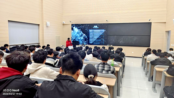 我院特邀河南奇酷科技有限公司运营总监李志涛、河南量子矩阵科技有限公司项目部焦培源、付斌斌老师为计算机类专业的同学进行宣讲;郑州华腾科盛自动化教育科技有限公司郭小莉老师、上海琪驭精工科技有限公司赵永刚老师为机械、电气专业学生进行宣讲;郑州信盈达电子有限公司周中孝经理为电子信息专业学生进行宣讲。各位老师从行业发展现状、未来的发展方向以及面临的机遇和挑战等方面并结合就业形势,以宏观脉络从微观入手,使得学生直观上激发职业探索和规划的意识,也对专业发展前景和应有能力有了清晰的认识。