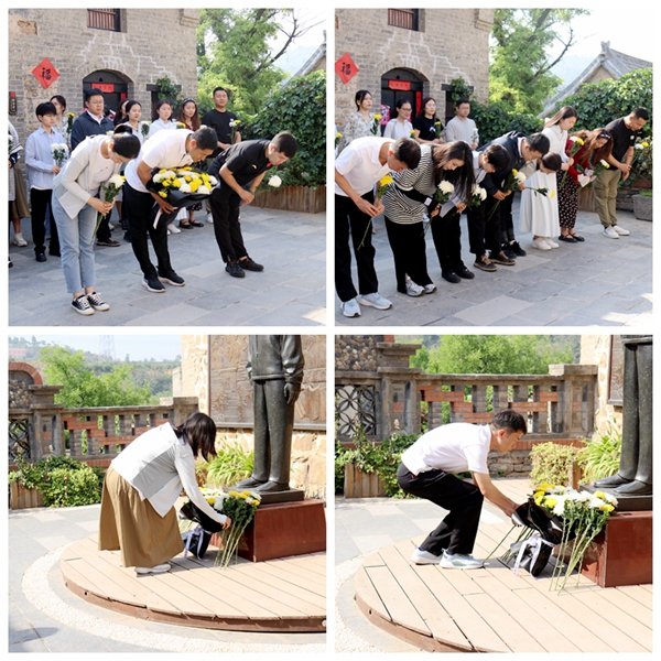 随后,全体老师对故居周围进行卫生清理和打扫并在临别之际向创办人行礼献花,表达对创办人的感恩与怀念。