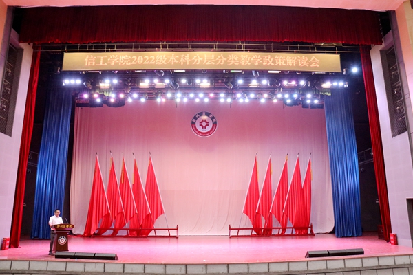 为进一步推进教育教学改革,持续培育人才培养特色、提高人才培养质量,满足学生个性化发展需求,信工学院于6月19日晚在校大礼堂开展2022级分层分类教学政策解读会,张晓冬院长、院党委周余书记、各教研室主任、22级全体辅导员以及22级全体学生参加了会议。会议由考研教研室张永鑫主任主持。