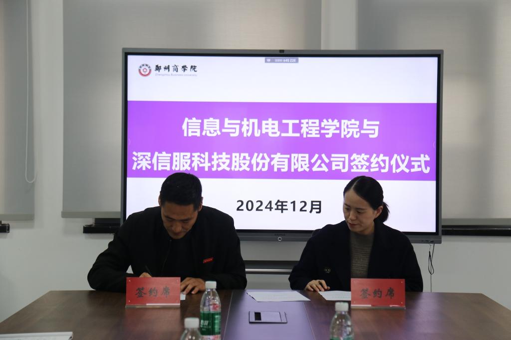 2024年12月12日下午,深信服科技股份有限公司杨琳、史彦武等一行领导莅临我院参观,并在信工大楼301会议室进行对开展网络安全微专业进行相关交流和关于校企合作的签约。
