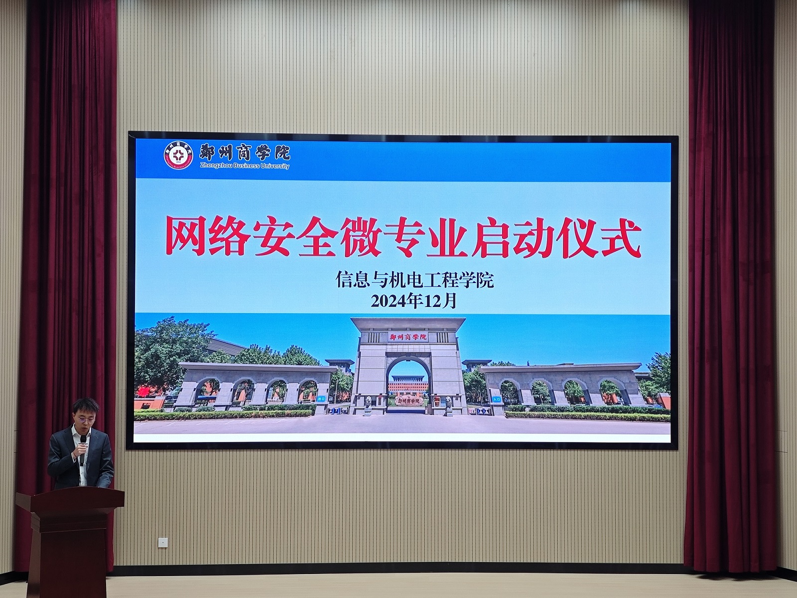 同时间,在信工大楼报告厅,举行由赵鹏阳老师主持关于网络安全微专业启动仪式。同时,进行了校企双方实习实训基地的授牌仪式。