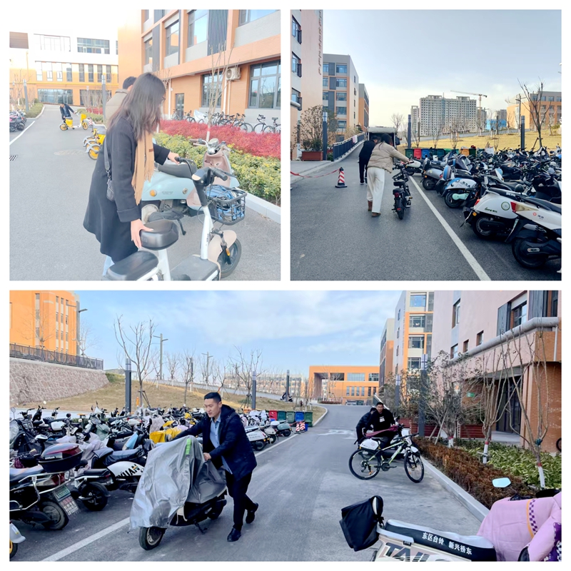 针对学院内电动车停放混乱的问题,我院迅速组织专人对电动车进行了整理与规范停放。这一行动有效提升了校园环境的整洁度,为师生的出行安全提供了有力保障,进一步营造了良好的教育教学氛围。