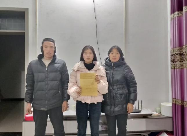 为了让家庭经济困难家长知晓其子女在校受助情况,各班学生与家长通过合影方式,确保合温馨告知书发放到位,告知到位,不落一人,在规定的时间内完成了温馨告知书入户发放工作,并加强学生资助政策和资助成效的宣传,畅通家校信息互通渠道。