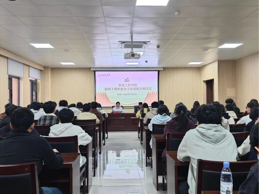 为做好党员发展工作,严把党员入关口,切实强化入党积极分子的培养教育,我院于3月13日晚在B310会议室举行“机电工程学院第四十期入党积极分子培训班开班仪式”。机电学院党委书记杨茗涵、团委书记顾成健、各学生党支部书记、全体辅导员及本期入党积极分子培训班成员共同参与本次培训,会议由党委组织委员杨瑞瑞同志主持。