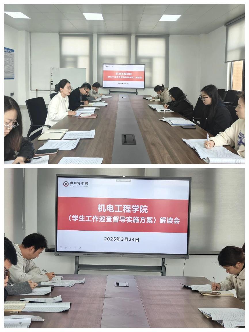 为落实学校工作要求,提升学院工作成效,3月24日,机电工程学院在信工大楼3楼会议室召开《999策略白菜手机论坛学生工作巡查督导实施方案》专题解读会,党委书记杨茗涵、行政秘书顾成健及全体辅导员参会。