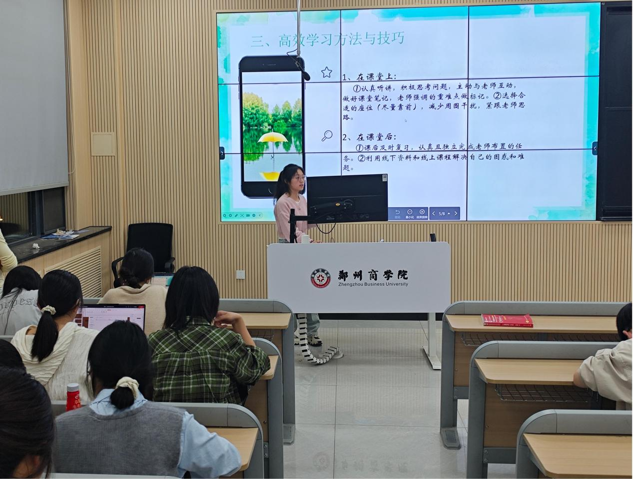 2024级获奖学生王梦瑶真诚地分享了自己的学习方法和心得,同时她还表示奖学金不仅是荣誉的象征,更是激励自己不断前行的动力。她呼吁同学们要心怀感恩,树立远大志向,用实际行动来回报家庭和社会。