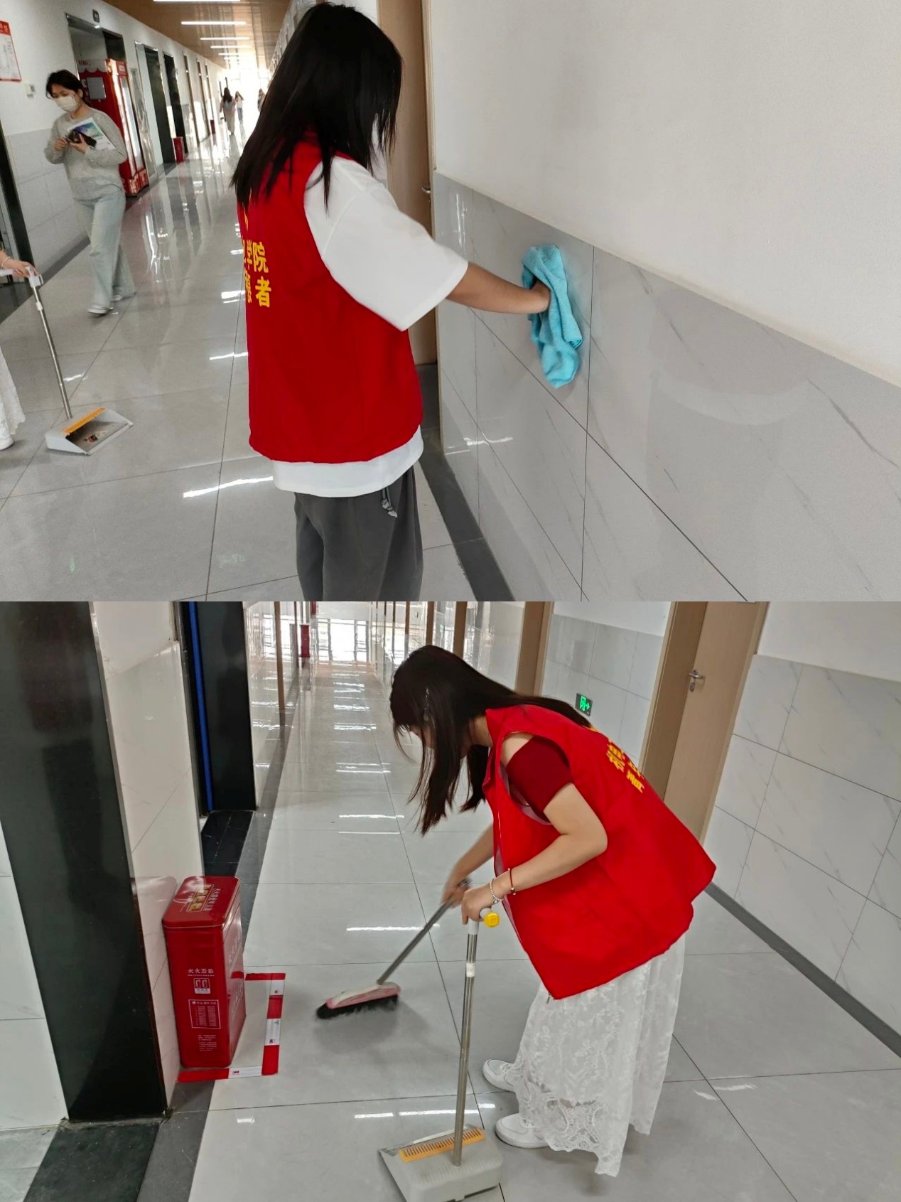 本次行动着重改善宿舍门楣标识的规范性、清除墙面附着物,并提升地面洁净度等基础卫生标准,从细微环节入手着力推进学生文明行为规范养成。活动期间,各年级辅导员组织学生骨干及在校住宿学生展开行动,重点治理门头标识不规范、墙面张贴物残留等突出问题。针对墙面积尘、地砖接缝等卫生薄弱环节,采取“现场示范+师生共治”的形式,将劳动教育融入宿舍日常管理。在物品收纳规范指导、墙面污渍清除等实操过程中,有效强化学生自我管理能力。