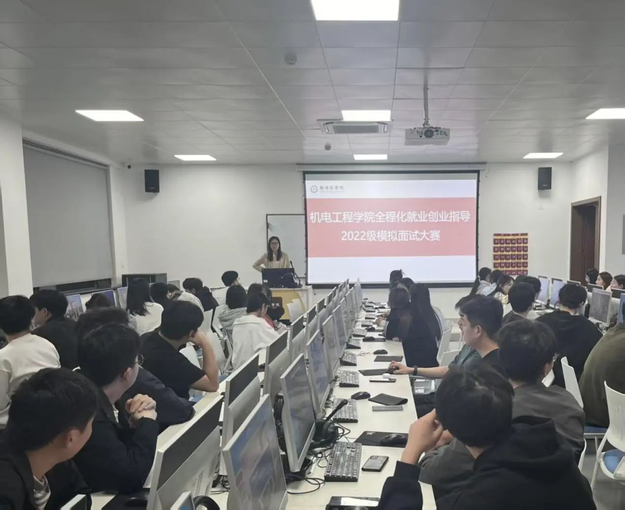 为助力学生提前适应职场环境,提升求职面试实战能力,4月17日下午,机电学院开展了全程化就业创业指导——2022级模拟面试大赛动员班会。
