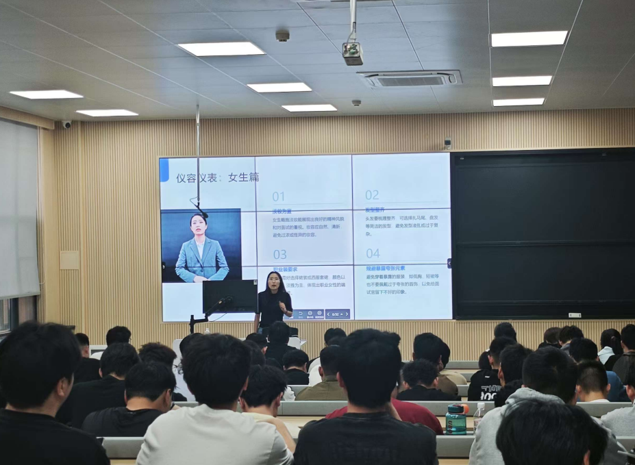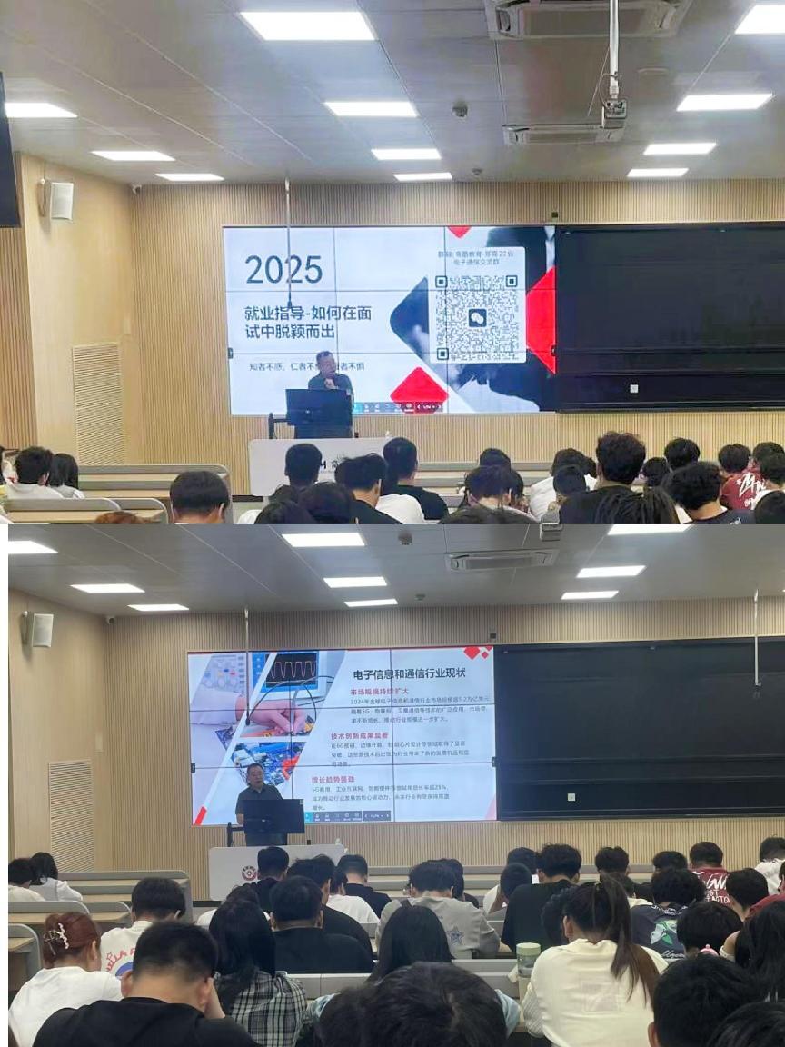 讲座伊始,就业指导老师立足行业现状,深度剖析当前电子通信与电气机械领域的用人需求与发展趋势。随后,专家们从面试全流程切入,围绕“面试礼仪准备”“面试物品与流程规划”“自我介绍与沟通技巧”“电话面试策略”等核心模块展开系统讲解,结合真实案例拆解常见面试误区。李志涛总经理指出:“面试不仅是能力的考核,更是细节的比拼。从着装到谈吐,从时间管理到问题应答,每一个环节都需展现专业素养与应变能力。”