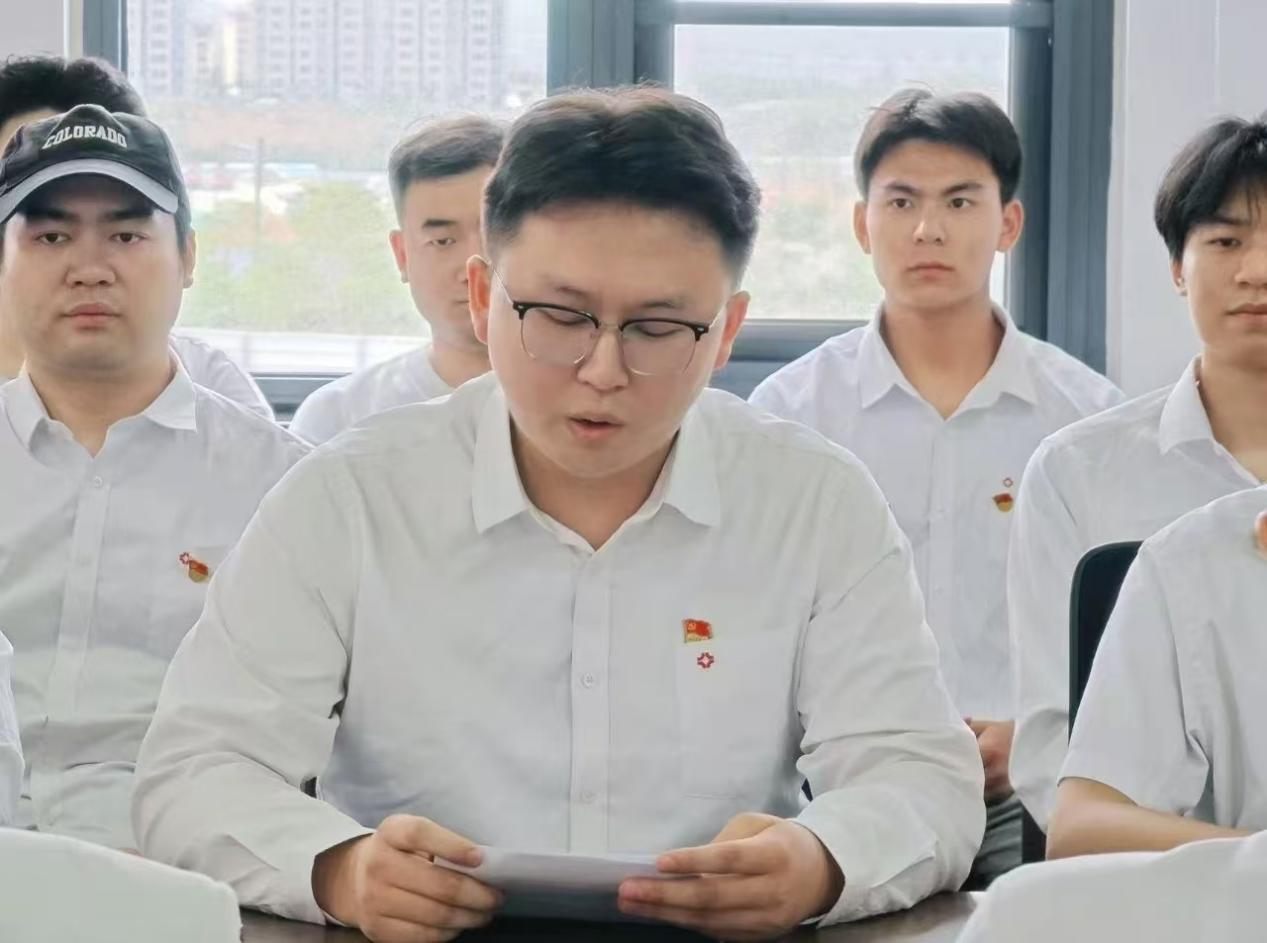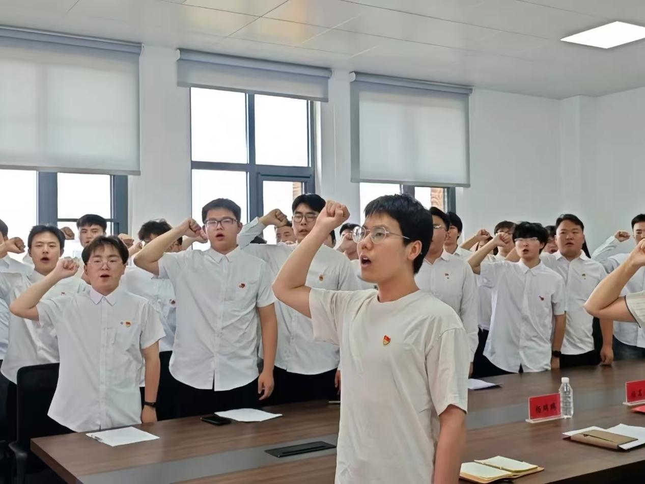 活动第一项,在毕业生党员代表史振振同志带领下,全体参会党员高举右拳,齐声重温入党誓词。在铿锵的誓言中,党员们进一步增强入党初心,强化党员身份意识。