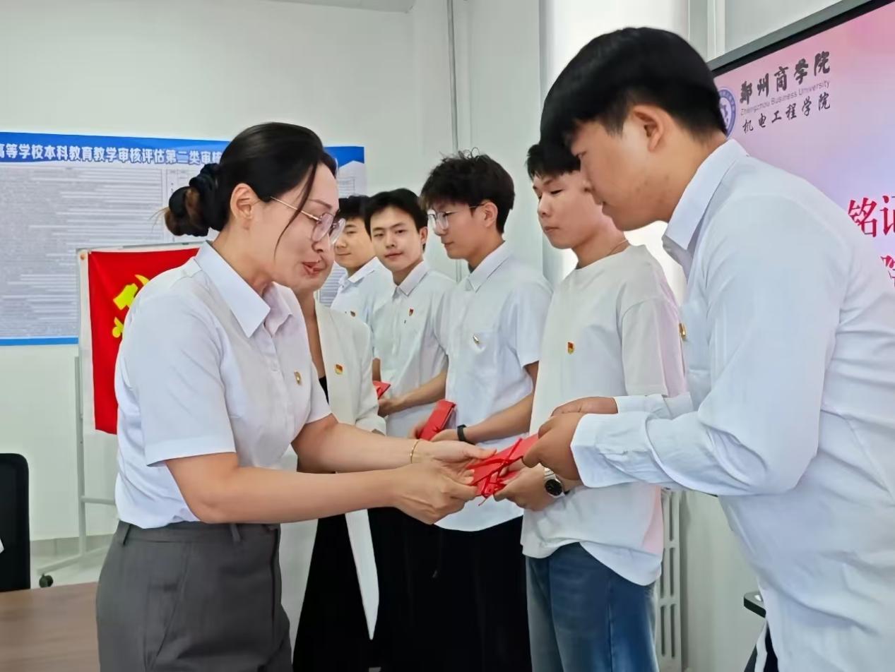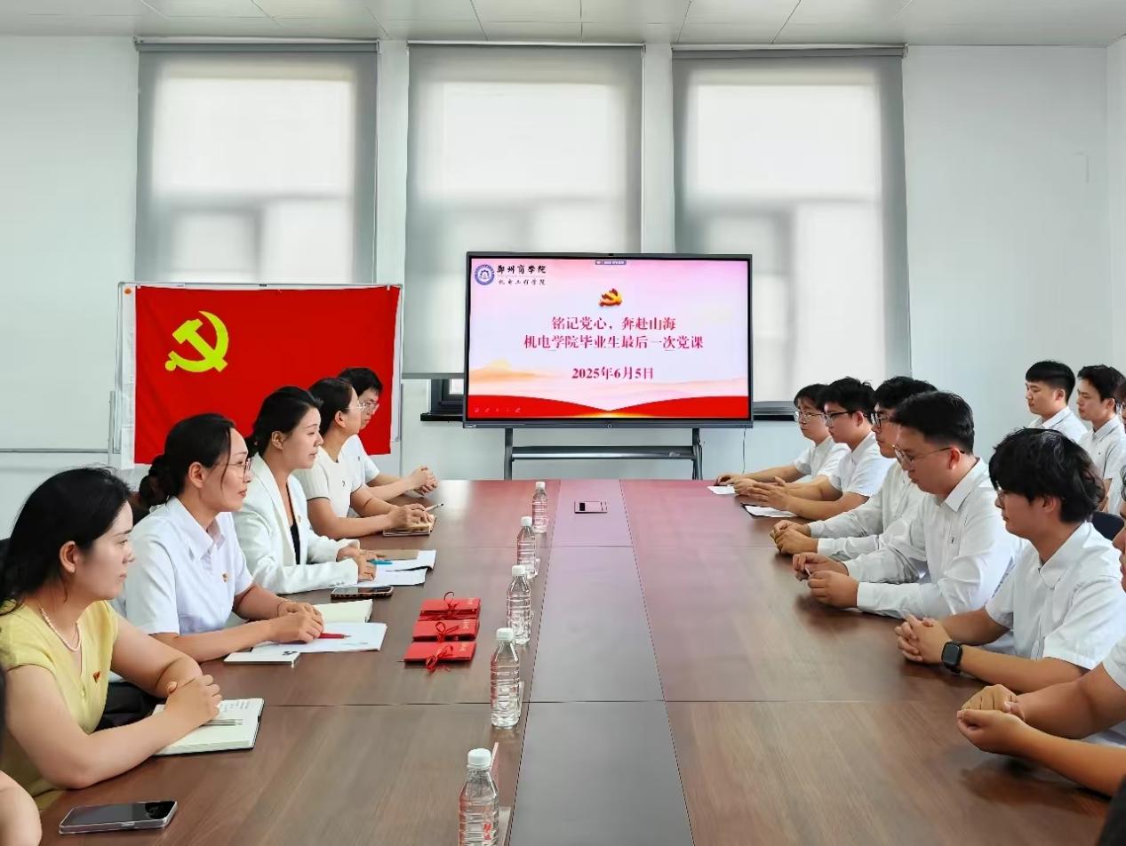 为强化毕业生党员的党性修养和身份意识,在2025届毕业生毕业之际,引导大家在人生新的征程中牢记党员身份、明确责任担当。6月5日下午,机电工程学院在躬行楼三楼会议室开展“铭记党心,奔赴山海”毕业生党员“最后一次党课”活动。机电工程学院党委书记杨茗涵同志、党委组织委员杨瑞瑞同志,学生第一党支部书记栗璐同志,第二学生党支部书记赵艳同志,第三学生党支部孔颖同志以及全体2025级毕业生党员参加此次活动。