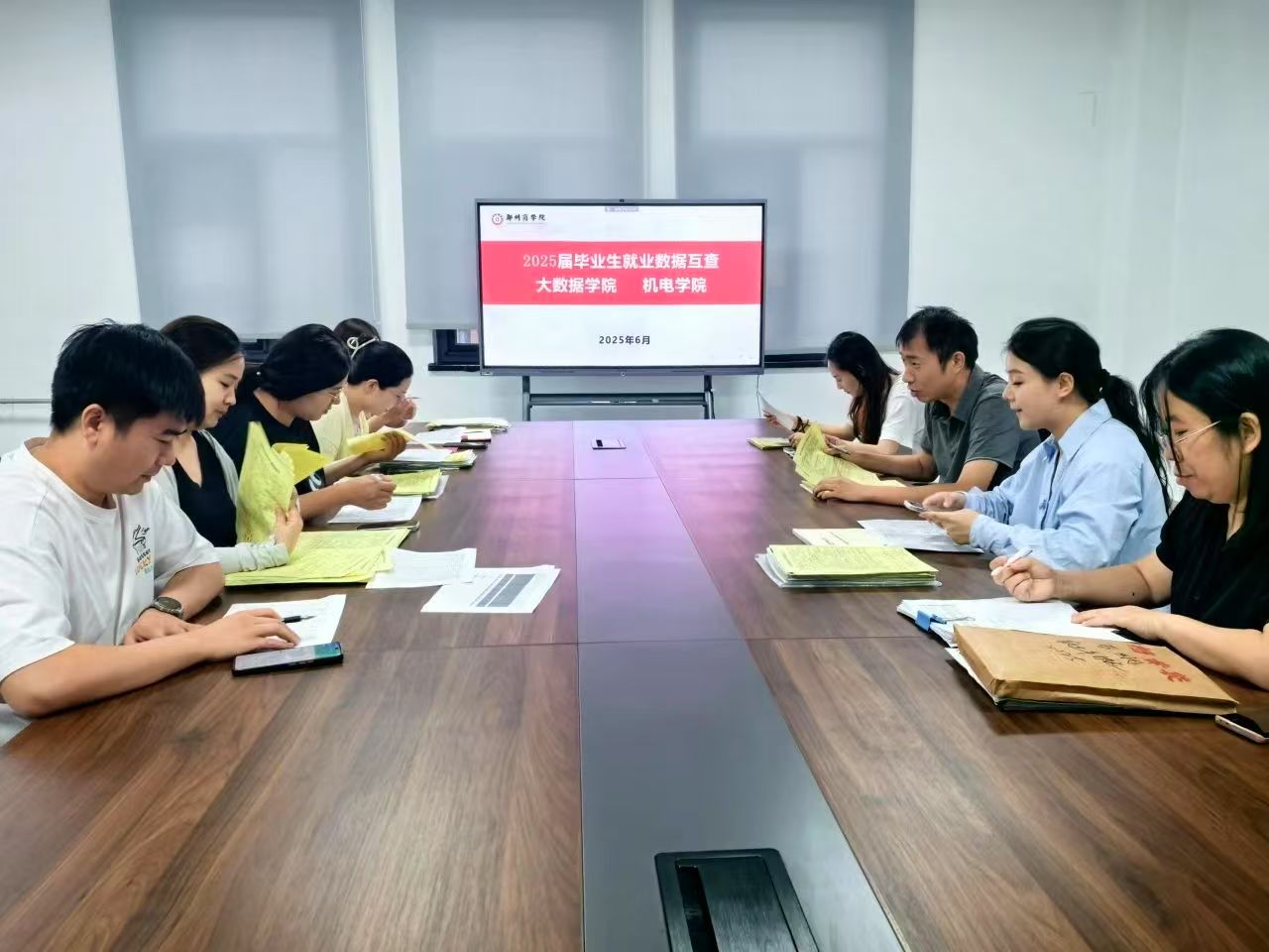 为严格落实就业统计规范要求,切实保障毕业生就业数据的真实性与准确性,6月18日,机电学院与大数据学院联合开展2025届毕业生就业数据互查工作。两院毕业班辅导员及就业工作负责人共同参与,通过双向核查、专题座谈等形式,对毕业生就业信息进行了全面梳理与交叉验证。
