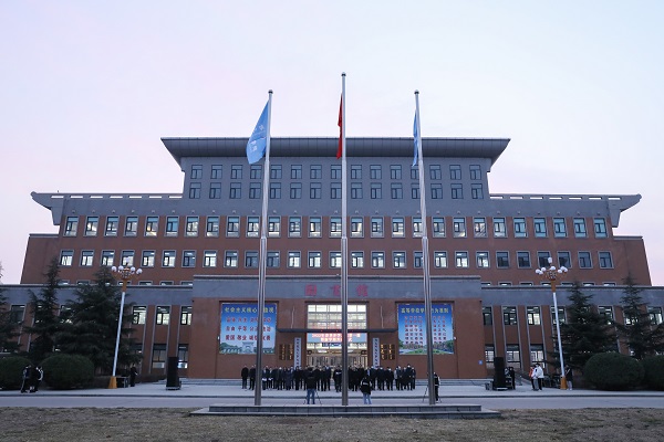 2月28日是我校2022年春季学期开学上课第一天。为深入学习贯彻习近平总书记关于“大思政课”建设的重要指示精神,巩固拓展党史学习教育成果,弘扬伟大建党精神,进一步厚植爱国情怀、激发奋进力量,学校特举行开学思政第一课暨新学期升旗仪式。当日清晨,党委书记马书臣、副校长师求恩、党委副书记裴晓涛、工会主席张江涛和各单位主管、副主管、师生代表迎着朝阳齐聚校园中心广场,参加开学思政第一课暨新学期升旗仪式,迎接新学期,开启新征程。升旗仪式由校团委书记路程主持。