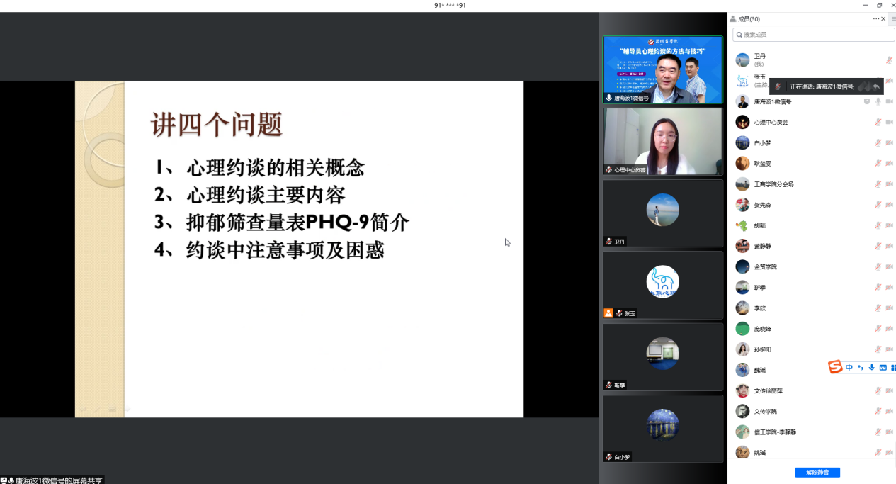 活动目标:在疫情防控期间有效地掌握学生心理问题识别与辅导的技能,帮助师生调整压力与情绪管理认知,掌握有效应对与调节方法。