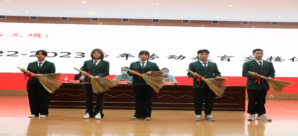 接着由辅导员老师及学生代表发言,并进行劳动工具交接仪式。