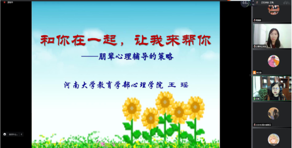 为使朋辈队伍成为我校心理健康教育工作的重要补充力量,提升朋辈团队专业心理辅导技能,以便其能为身边一般轻微性心理问题同学提供及时的帮助,对严重心理问题和心理危机情况及时报告,确保身边同学能得到及时有效的心理援助。10月26日下午,心理健康教育中心组织召开“朋辈心理辅导策略”线上专题讲座,此次讲座邀请到河南大学教育学部王瑶教授,由心理健康教育中心贠芸科长主持,各学院心理委员、22级宿舍心理联络员、心理健康社团驿心社参会。