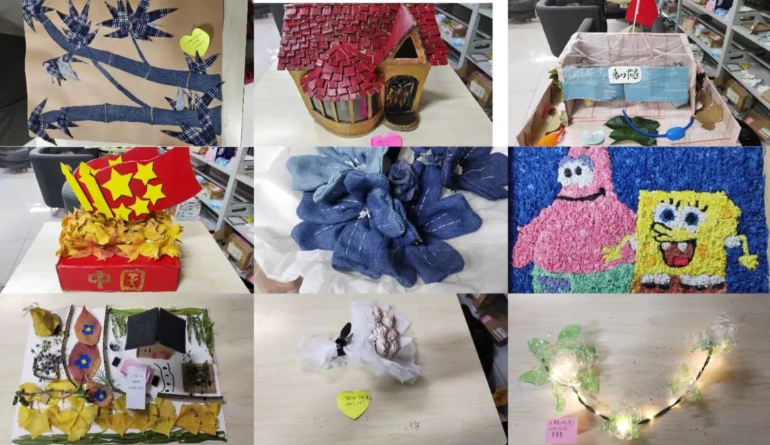 上午八点在亚泽大楼116进行作品收集,同学们的作品都很优秀,其中包括秋叶画,废弃物品所制作的房子、火箭、琵琶等模型,旧纸板所制作的海绵宝宝、我爱祖国等画册,充分体现了同学们真正参与其中,用自己的智慧和双手彰显了劳动精神。
