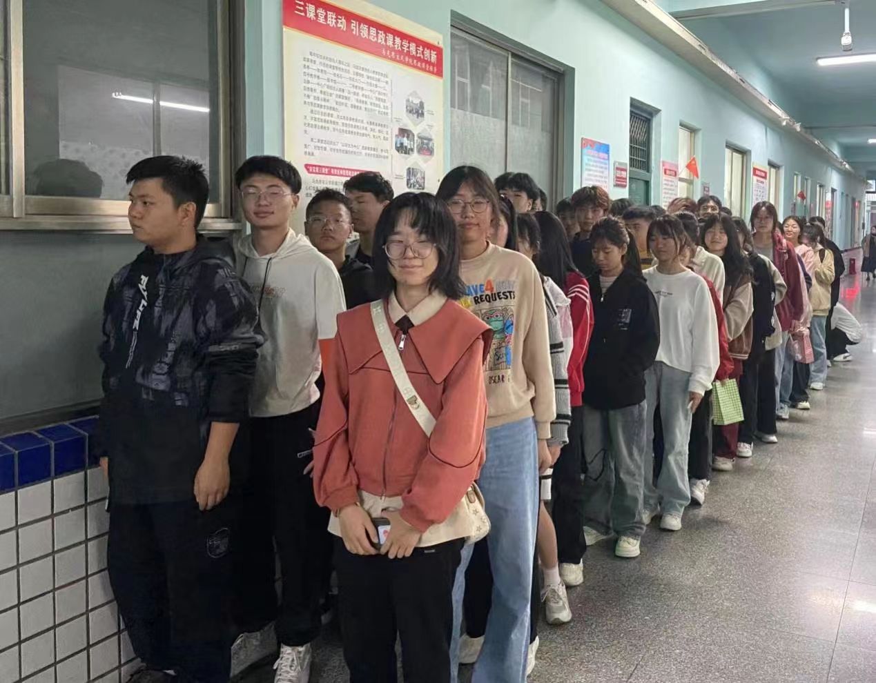 10月22日,同学们按照要求到二号教学楼201教室领取奖品。在领奖前,同学们自觉在教学楼走廊排队,安静、整齐、有序地领取奖品。不管是等待的过程还是领奖的过程中,都从生活的细小之处彰显了我院同学们良好的礼仪素养。