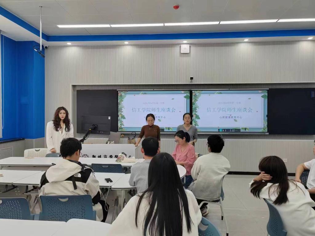 为进一步增强大学生心理健康意识,宣传普及心理健康知识,提高班级心理委员业务能力,更好地开展心理健康工作,10月26日中午,心理健康教育中心在新校区A101室组织召开信工学院心理委员师生座谈会,全体2023级心理委员及部分心理部成员参加。
