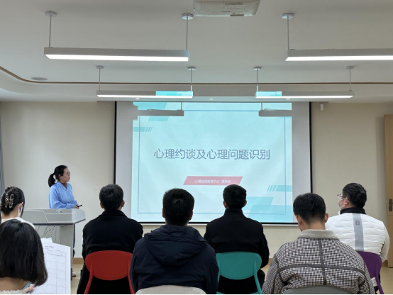 培训开始前,李云佳老师带领与会人员集体参观了心理健康教育中心,使各位老师全方位了解心理健康教育中心功能室设备配置、运作机制和服务内容。随后,黄静静老师围绕心理约谈技巧、心理问题识别主题为辅导员老师们进行了培训,详细讲解了心理约谈的基本流程、注意事项及心理问题识别的方法线索。最后,王克志书记对心理健康教育工作的重要性和必要性进行强调,并提出要求。