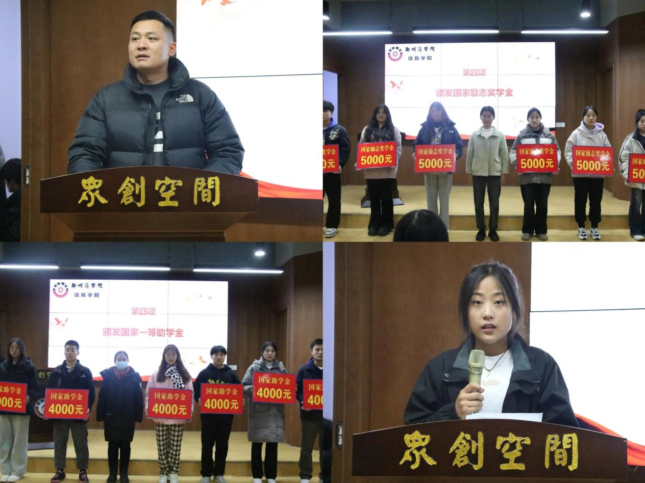 为进一步宣传资助政策,加强对学生的感恩教育,培养学生诚信感恩意识,激励学生勤奋学习、努力进取。体育学院于2023年11月30日在学生事务中心三楼路演厅举行了国家奖助学金发放仪式。会上,刘书记就主题发表讲话,对我院学生提出了殷切期望,希望同学们树立远大理想,胸怀报国之志,把个人的成长进步与国家的发展紧密结合起来;希望同学们学会珍惜感恩,用实际行动回应党和国家的关怀;希望同学们刻苦学习,奋发图强,成长为国家需要的人才。