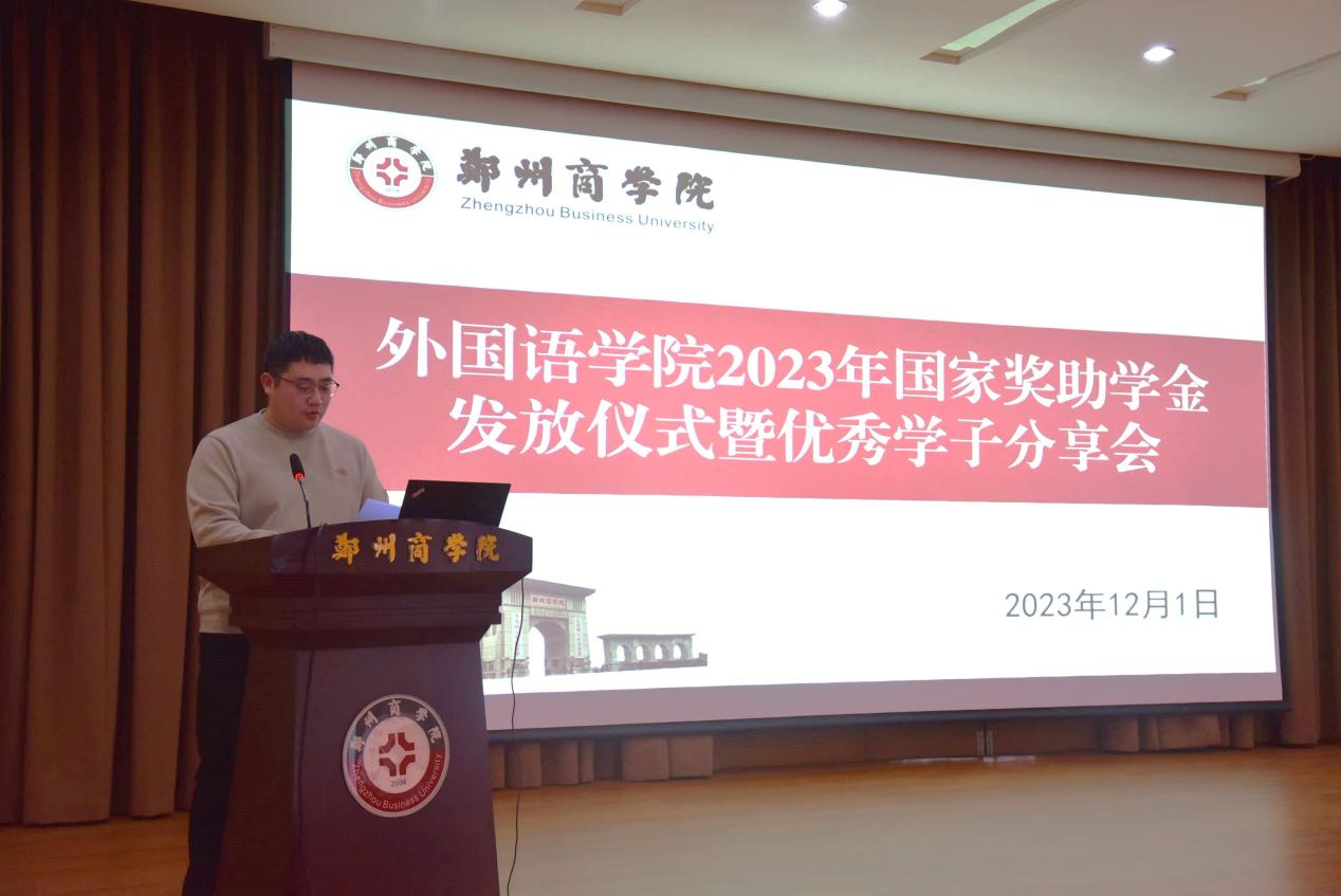 为全面宣传党和国家的学生资助政策,充分发挥资助育人功能,激励学生奋发图强、立志成才。12月1日下午,外语学院于图书馆五楼报告厅举行国家奖助学金发放仪式暨优秀学子分享会。会上,党委书记王克志进行总结发言,他希望同学们牢记国家帮助之爱,牢记学校培育之劳,牢记父母养育之恩,力使自己成为有理想、肯吃苦、敢担当的社会主义合格建设者和可靠接班人。此次奖助学金发放仪式的成功举行,不仅对受表彰学生给予了肯定,使受资助学生深切地感受到国家与学校对自身的关爱,而且促进了外语学院优秀学风的建设,激发了学生自主学习、努力成才的积极性。
