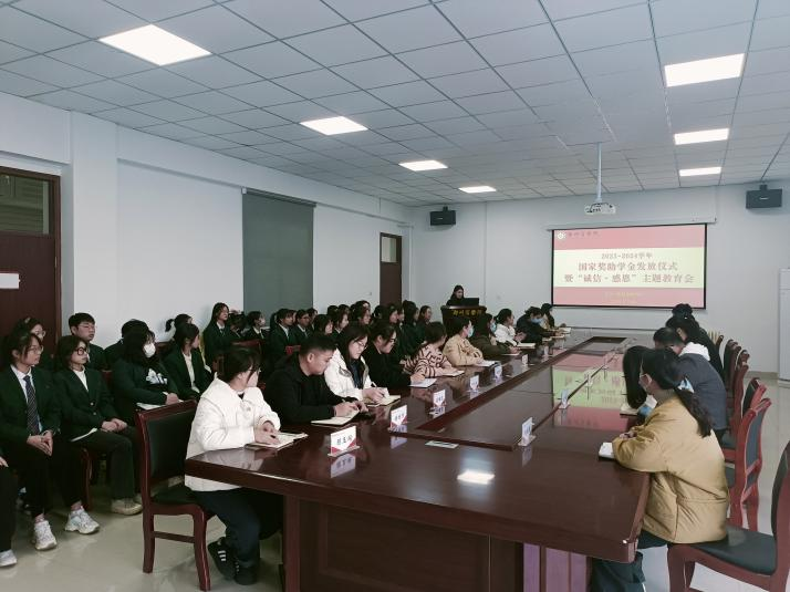 为大力推进资助育人,落实学校奖助学金发放工作,引导受助学生心存感恩。12月4日下午,文传学院在自力楼216会议室举行2023-2024学年国家奖助学金发放仪式暨“诚信·感恩”主题教育会。文传学院党委书记贾蓓、团委书记王凯、辅导员乔玉洁老师分别为国家奖学金、国家励志奖学金和国家助学金学生代表颁发奖牌。随后,国家奖学金、国家励志奖学金、国家助学金获得者代表分别发言。通过此次会议,加强了对受助学生的教育引导,激励青年学子满怀激情、志存高远地茁壮成长,指引学生感恩社会、感恩集体、感恩学校,以满腔热血回报社会。