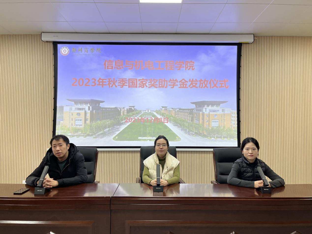 为贯彻落实国家资助政策,引导学生合理使用国家奖助学金。12月8日,信工学院在信工大楼B310会议室举行了2023年国家奖助学金发放仪式。会上,国家奖学金获得者20机械2班王艳坤作为学生代表进行发言,分享了他在郑商的三年时间里的学习和成长经历,和学弟学妹交流了经验。随后,信工学院学生党支部书记周思淇老师、宣传委员孔颖老师、就业专员裴杨老师分别为国家奖学金、国家励志奖学金、国家助学金学生代表颁发奖牌并合影留念。此次国家奖助学金的发放不仅激励了获得国家资助的同学,更有利于促进优良学风的形成,让更多的学生从中受益,进而为社会培养更多的优秀人才。