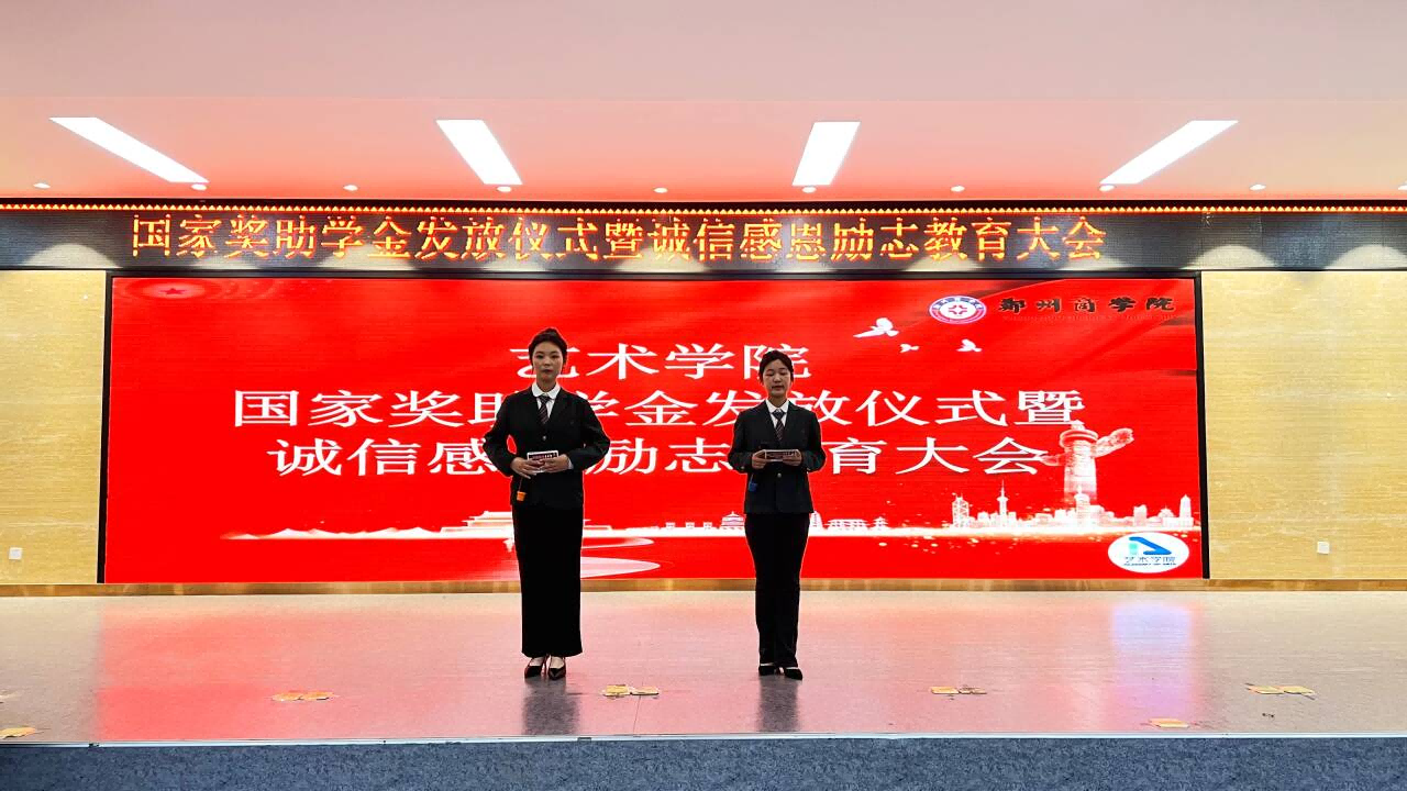 为深入贯彻“资助育人”理念,培养学生诚信感恩意识,激励学生勤奋学习、努力进取。艺术学院于11月29日晚在自力楼报告厅开展“国家助学金发放仪式暨诚信感恩励志教育大会”。党委书记李帅为国家励志奖学金获得者颁发荣誉证书,并对获得奖学金的同学表示热烈的祝贺。会议最后,李帅书记在讲话中强调,获得奖学金不仅是对学习成绩的肯定,更是对艰苦奋斗精神的赞扬,希望获奖学生珍惜这份奖励和荣誉,铭记学校和国家的殷切期望,在今后的学习、生活、工作中再接再厉,继续发挥模范和表率作用,争做无愧于伟大时代的新青年。