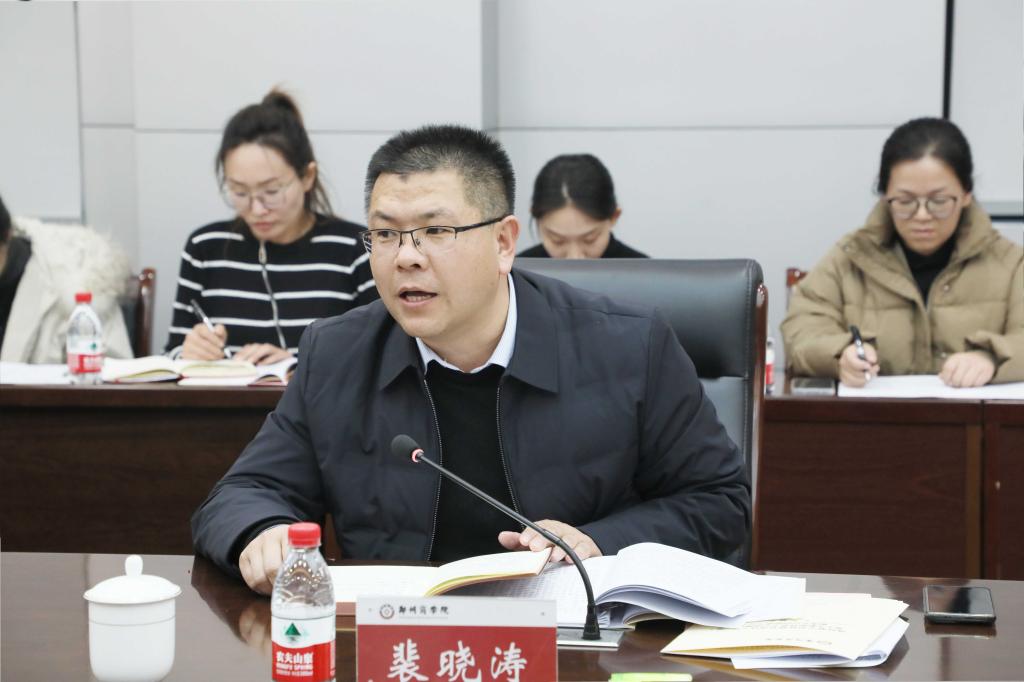 为推进项目顺利开展,切实提高项目研究质量,12月28日下午,我校在行政楼第一会议室举行“高校数字思政精品项目”开题论证会。出席此次会议的有华中师范大学心理学教授、博士生导师吴才智,河南师范大学教育学部党委书记陈勇及我校课题组全体成员,会议由项目负责人、校党委副书记兼纪委书记裴晓涛主持。