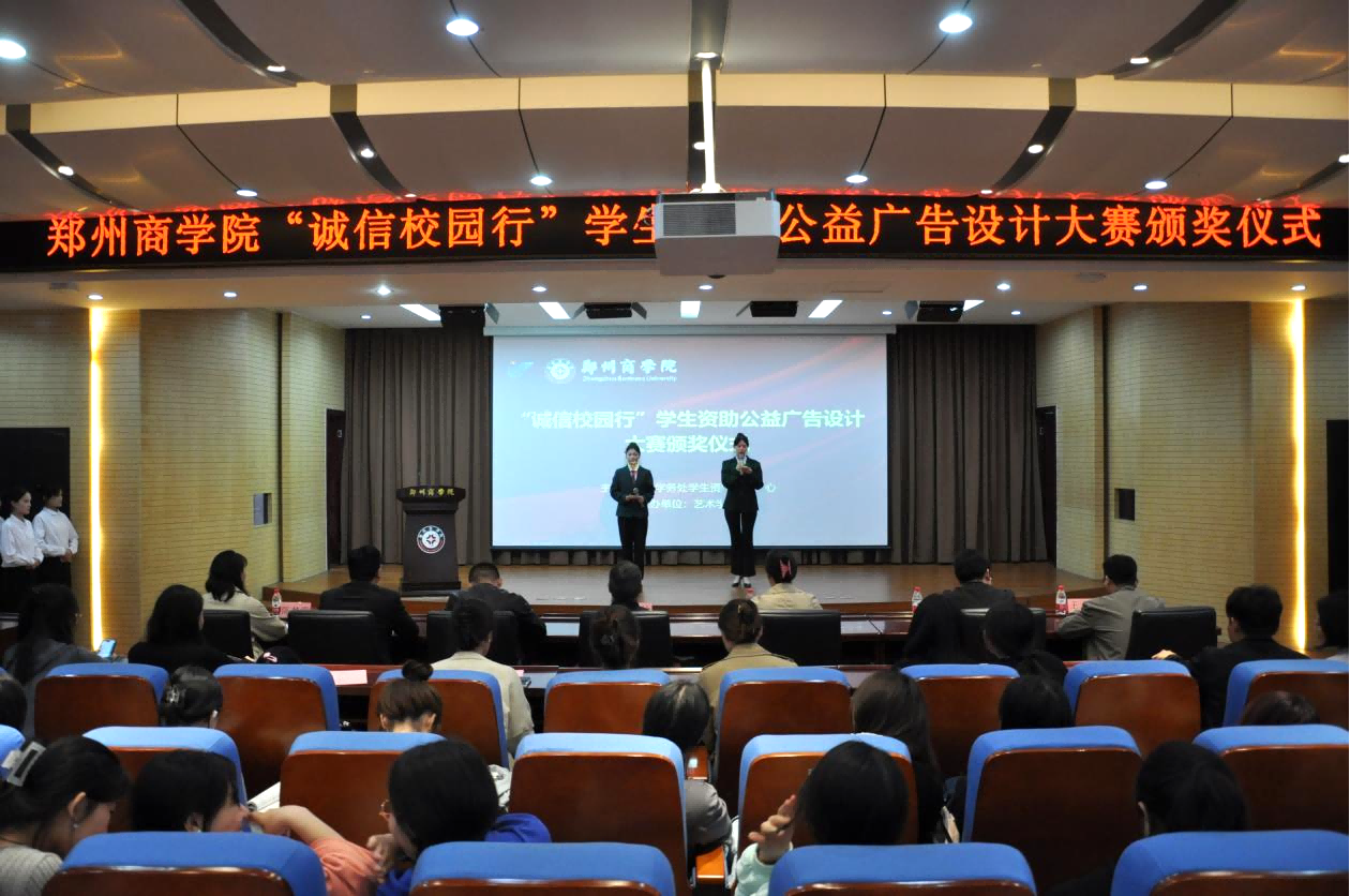 为认真落实党的二十大关于“完善覆盖全学段学生资助体系”的重要决策部署,宣传国家学生资助政策体系,树立学生自立自强、诚信感恩意识。4月11日晚,校学生资助管理中心会同艺术学院,于图书馆五楼学术报告厅成功举办了2023-2024学年度“诚信校园行”学生资助公益广告设计大赛颁奖仪式。艺术学院党委书记李帅、校资助管理中心王晶晶科长及各二级学院团委书记出席了本次会议,各学院辅导员老师代表和获奖学生代表参会。