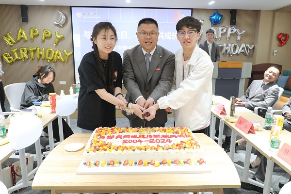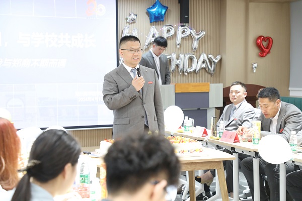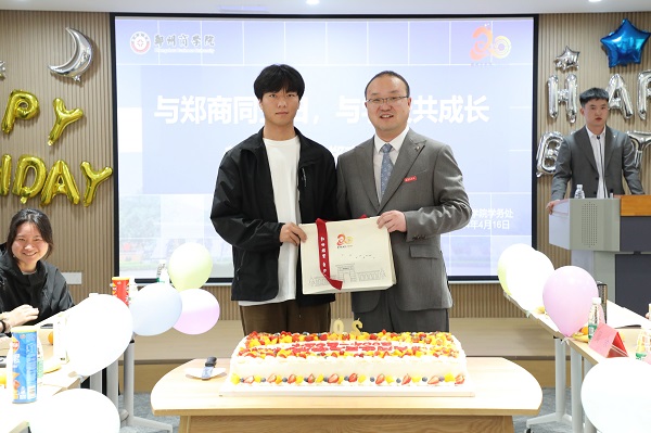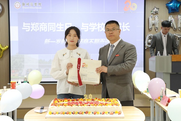 廿载芳华,弦歌奋进,2024年4月16日,郑商迎来了20周年校庆庆典,全校师生共迎校庆、共享喜悦。中午13:00,学务处在32号楼团体功能活动室组织“与郑商同生日,与学校共成长”活动,为和学校同一天生日的31名同学举办集体生日活动,为他们送上生日关怀与祝福。校党委副书记兼纪委书记裴晓涛、学务处处长兼武装部部长路程、二级学院党委书记、生辅科科长李洪洋、31名学生及辅导员代表参加本次活动。活动由学务处生辅科宁震海老师主持。