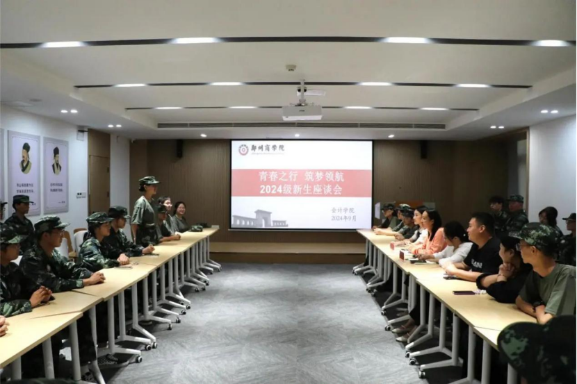 为进一步了解2024级新生入学后的适应情况,倾听学生心声,9月13日下午,会计学院在32号楼“一站式”学生服务社区召开“青春之行,筑梦领航”2024级新生座谈会。会计学院院长祝利芳、会计学院党委书记刘宏涛、行政秘书兼团委书记孙柳阳、24级辅导员代表景世中和方一诺以及30余名新生代表参加座谈会。
