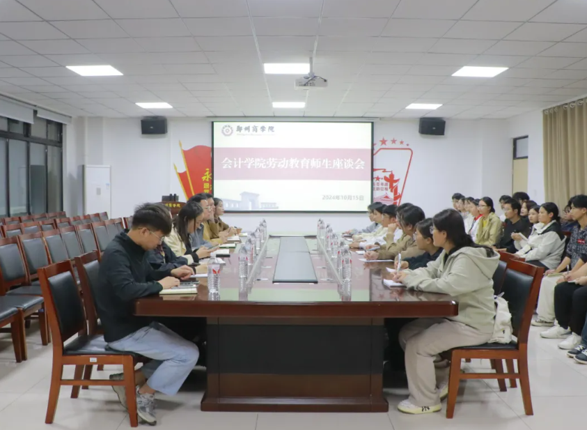 为全面推进我院24级新生劳动教育的开展,贯彻落实劳动教育理念,帮助24级新生树立正确的劳动价值观,深刻理解我校劳动教育的意义与内涵。10月15日下午,会计学院于广恩楼103会议室开展劳动教育师生座谈会,此次会议由张紫妍老师主持,会计学院党委书记刘宏涛、行政秘书兼团委书记孙柳阳、24级全体辅导员及24级学生代表参加。