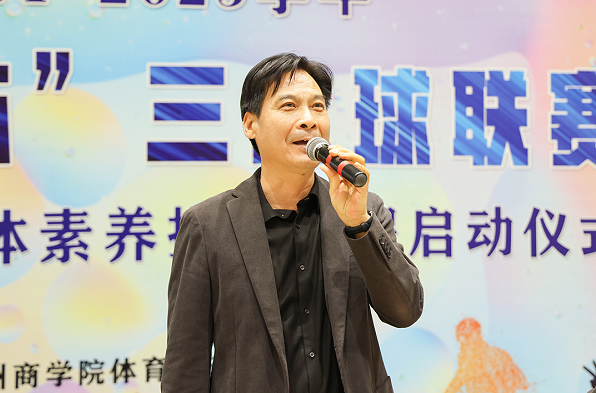 副校长、校体委常务副主任刘升阳致开幕词。他首先代表学校向本届联赛的开幕表示祝贺,向全体教练员、运动员、裁判员以及为联赛付出辛勤努力的工作人员致以问候。他强调,随着大学体育教学改革的持续深入,我校多支代表队在省级比赛中屡获佳绩,展示了我校体育育人成效,“无运动 不郑商”的校园体育文化氛围正积极影响着一届又一届郑商学子。三大球运动在我校有良好的群众基础,祝愿各代表队在比赛中严格遵守竞赛规则,赛出风格、赛出水平、赛出友谊,取得竞技成绩和精神文明双丰收。