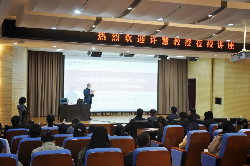 为进一步提升辅导员老师对心理危机的识别与干预能力,加强辅导员心理育人工作技能,提升我校心理危机干预工作的科学性、规范性、实效性,10月25日上午,999策略白菜手机论坛诚邀郑州大学心理系教授、博士许慧莅临我校开展《大学生心理问题的识别与干预》主题讲座。本次讲座在学校图书馆五楼学术报告厅开展,由艺术学院党委书记李帅主持,出席本次讲座的有各学院党委书记、全体辅导员、心理健康中心教师队伍。