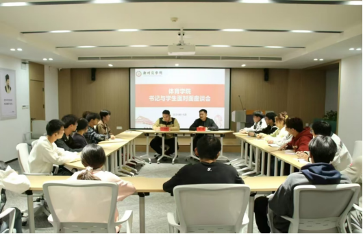 为深入了解学生学习、生活情况,及时回应学生关切,10月24日下午,我院在32号楼“一站式”学生服务社区组织开展“倾听学生心声,共话学生成长”——书记与学生面对面座谈会。体育学院党委书记刘健、行政秘书兼团委书记丁震霆及学生代表参加座谈会。
