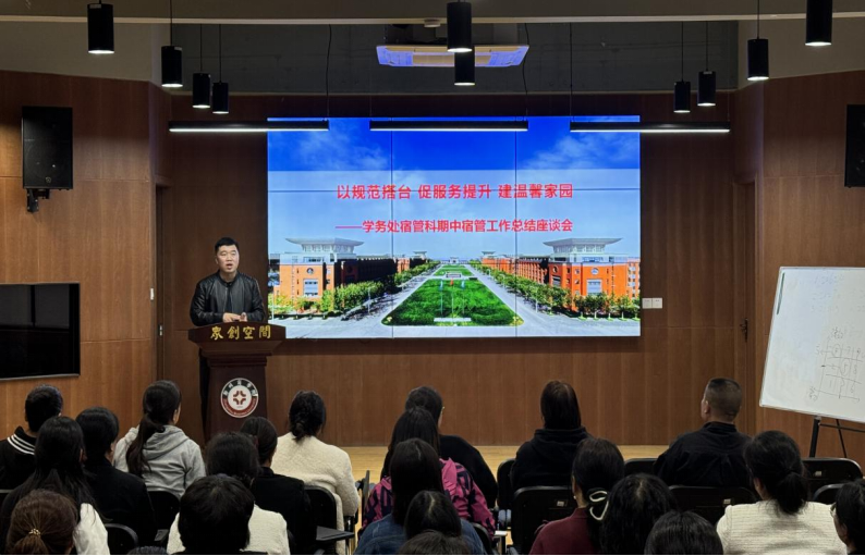 为推进我校“六化一家园”建设,进一步做好宿舍管理服务工作,积极营造规范整洁、文明和谐的生活环境,提升岗位服务质量,确保各项工作有条不紊地落实。10月30日上午,学务处宿管科在学生事务中心3楼路演厅召开期中宿管工作总结座谈会。