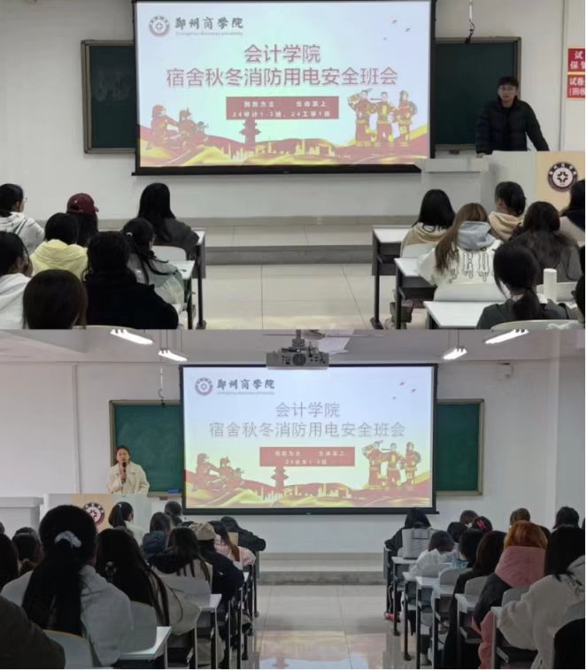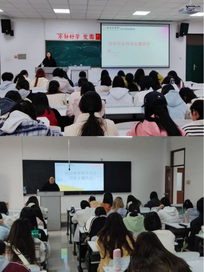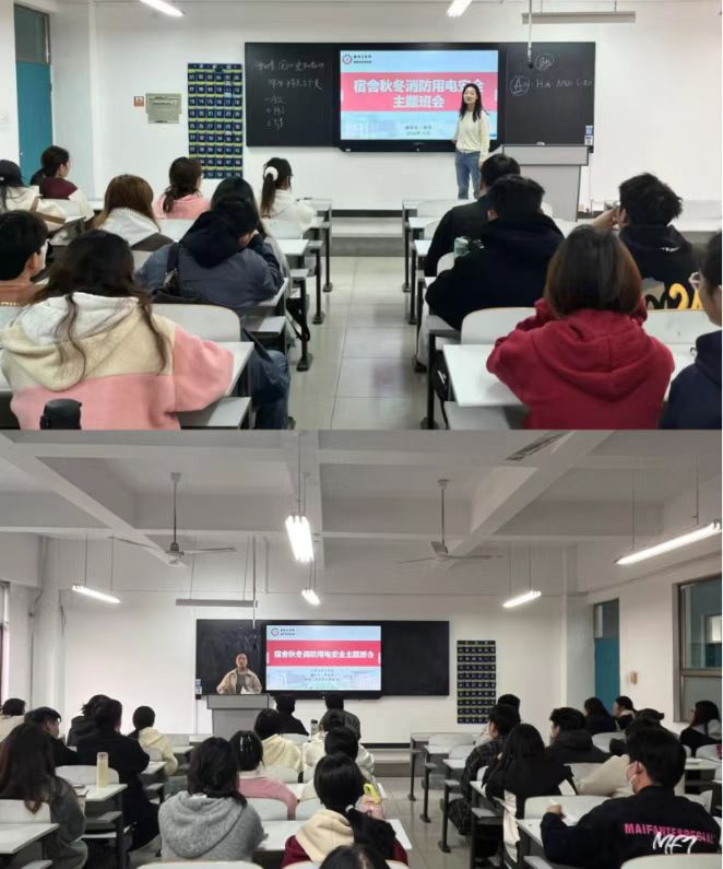 2024年11月9日是我国“第33个全国消防日”,为推进我校“六化一家园”建设,进一步提高同学们的消防安全责任意识,努力构建平安和谐宿舍,学务处宿管科组织各学院召开“宿舍秋冬消防用电安全”主题班会。