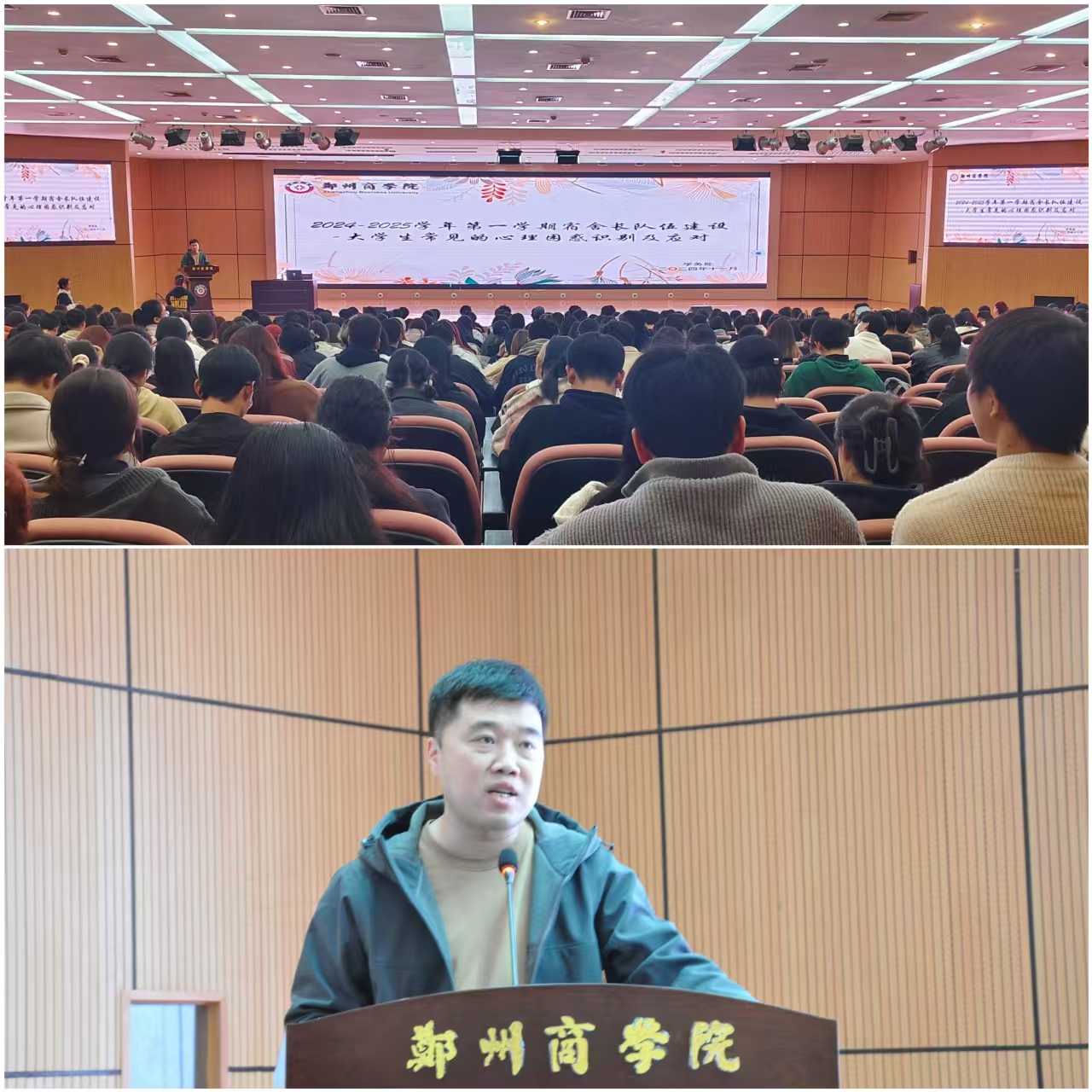 为推进我校宿舍“六化一家园”建设,进一步加强宿舍长队伍培训,强化宿舍长在学生心理工作中的工作效能,提升宿舍长心理健康工作技能,11月14日下午,学务处宿管科在图书馆一楼报告厅开展2024-2025学年第一学期宿舍长队伍建设-“大学生常见的心理困惑识别及应对”专题培训。此次报告特邀我校心理健康教育中心杨茗涵科长担任主讲,各二级学院宿舍长参加,会议由宿管科科长贺萌主持。