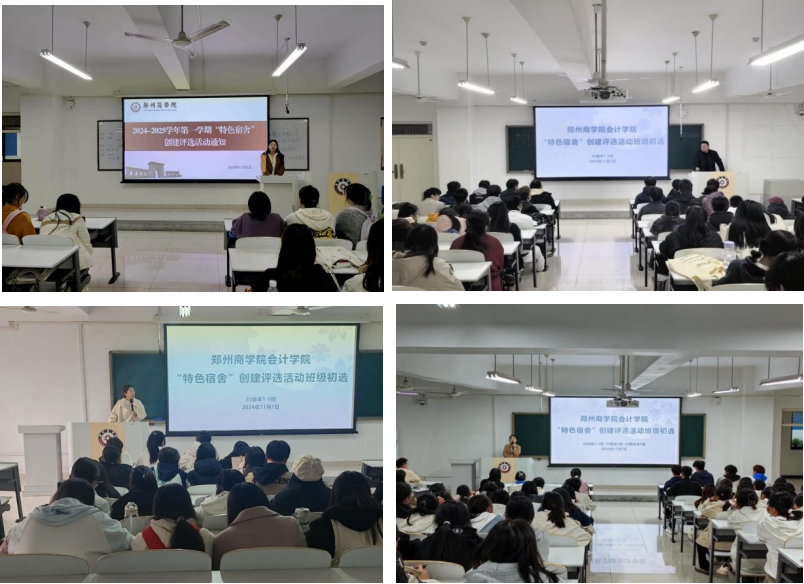 为贯彻落实期初校长报告“围绕学生成长,创新开展少而精、有特色、高品质的学生活动”要求,增强宿舍凝聚力,激发学生活力,进一步推进宿舍“六化一家园”的建设。11月6日-11日,会计学院开展2024-2025学年“特色宿舍”创建评选活动班级初选。