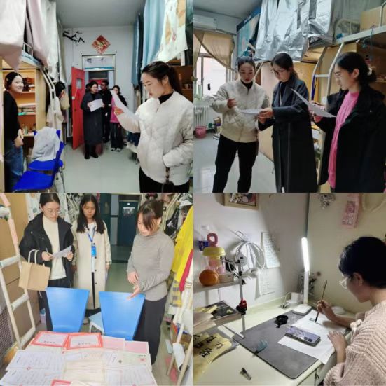 11月14日下午,文传学院党委书记贾蓓、团委书记王凯率五个专项小组深入学生宿舍,依次走访初评宿舍。在走访期间,贾蓓书记与各专项小组老师认真了解学生们的学习与生活情况,从安全秩序、内务卫生、精神风貌、遵章守纪、学业成绩这五项基本条件入手进行打分评比,最终确定了本学期文传学院的“特色宿舍”。