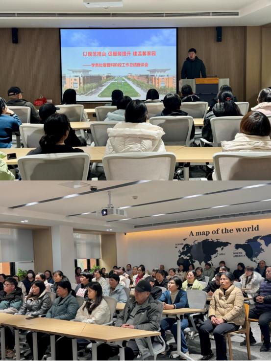 此次宿管员阶段工作总结座谈会为宿管员老师们提供了一个相互学习的平台,也为学校进一步优化宿舍管理工作奠定了坚实基础。下一阶段,学务处宿管科将继续坚持以学生为中心,用心谋划各项工作,不断细化管理措施,持续提升服务水平,为学生创造安全、温馨、舒适、整洁的学习生活环境。