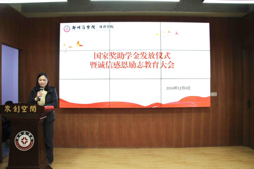为更好贯彻落实2024年国家奖助学金发放工作,不断扩大资助政策宣传,管理学院于12月18日在2号教学楼116阶梯教室开展2024年国家奖助学金发放暨感恩励志教育大会。通过此次会议的召开,进一步加深同学们对资助政策的了解,珍惜这份来自国家、学校的爱意、督促受助学生合理规划使用受助资金,并激励广大青年学生努力学习、奋发向上。