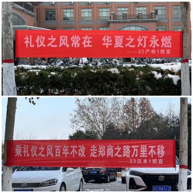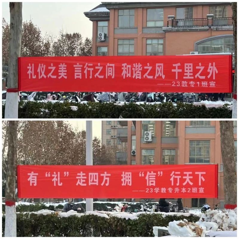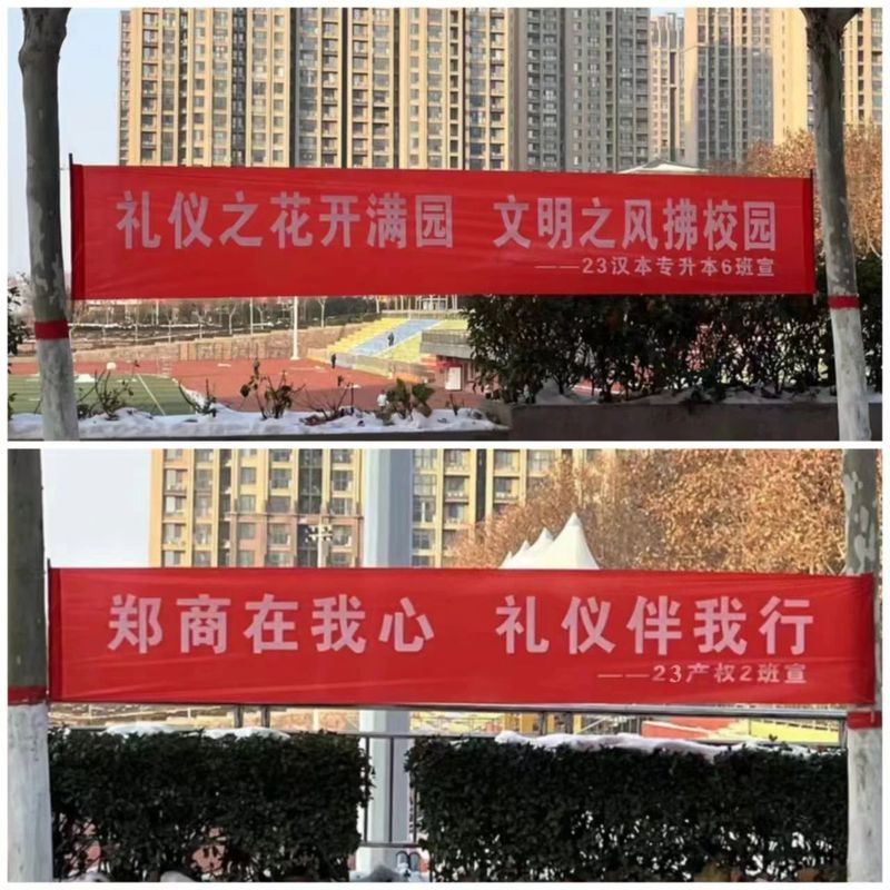 前期通过征集22级、23级所有班级提交的标语后,由全体辅导员老师共同进行评比,最终评选出八条优秀标语,并以横幅的形式在自力楼以及西区餐厅附近进行横幅展示,营造了我院浓厚的礼仪教育环境,时刻提醒我院学生规范自身行为。本次礼仪标语征集活动提高了我院莘莘学子心中的礼仪意识,为我院礼仪教育建设渲染了浓厚的文明礼仪氛围。