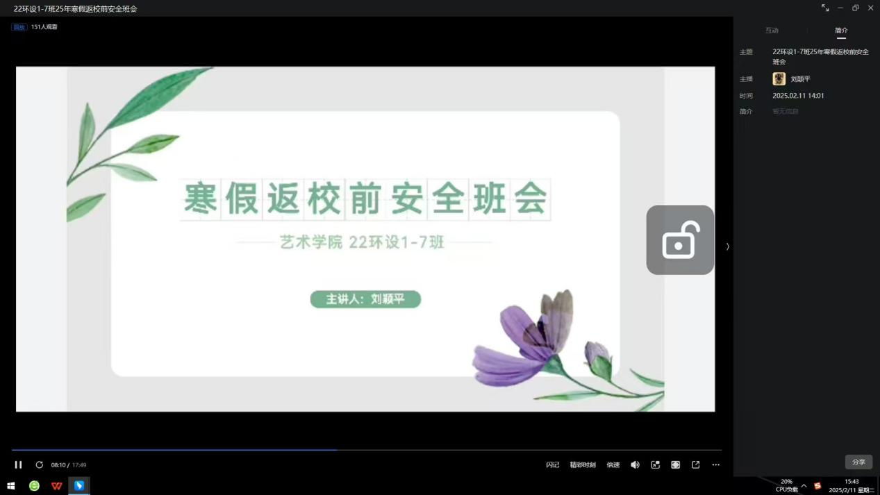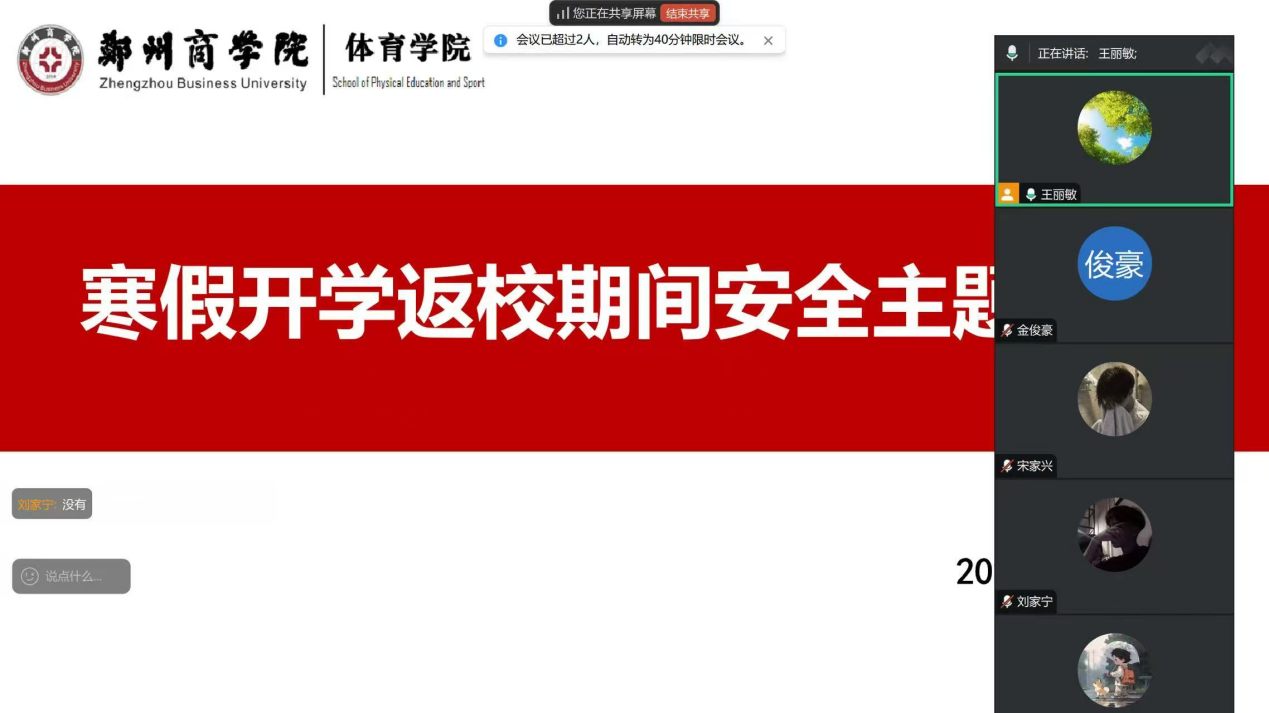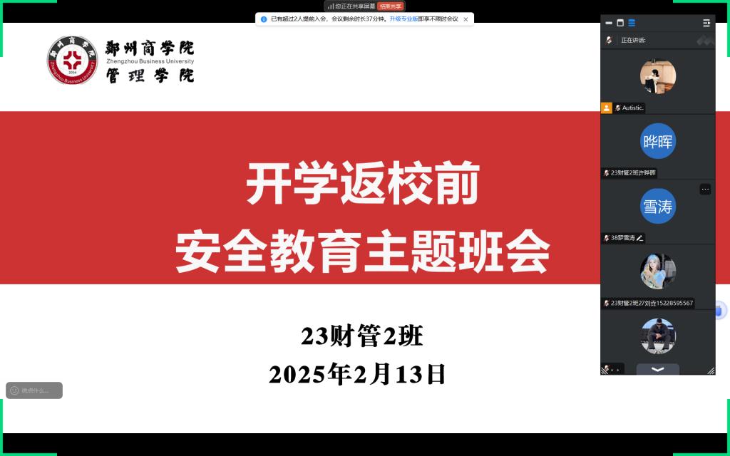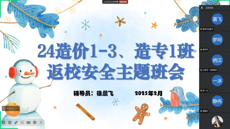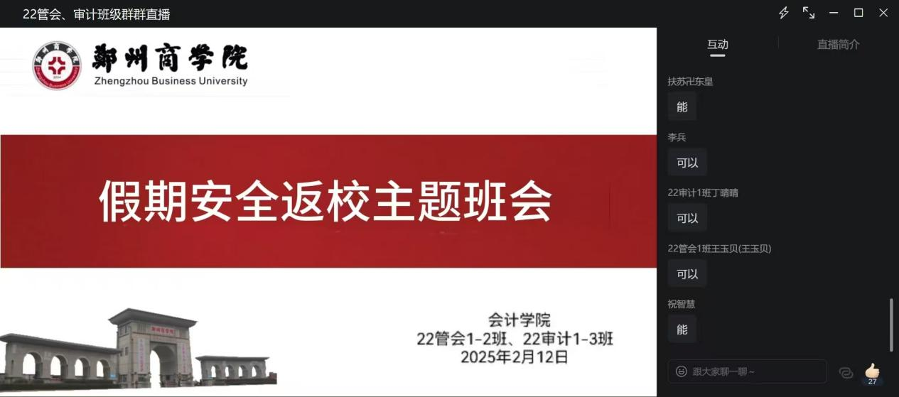 为切实做好新学期学生返校各项工作,增强学生的安全意识和防范能力,保障同学们平安顺利返校,学工系统于2月10日至13日组织各班级开展了返校安全教育主题班会。